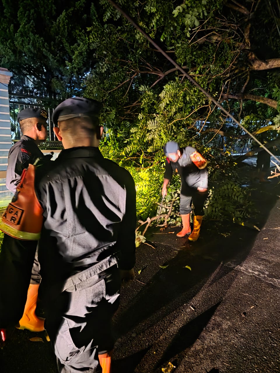Menanggapi peristiwa tersebut, puluhan personel Brimob Kompi 2 Batalyon B Pematangsiantar dipimpin Ipda Rudi Syahputra Siregar, S.Sos dikerahkan untuk turun membantu petugas Badan Penanggulangan Bencana Daerah (BPBD) mengevakuasi pohon tumbang yang berada di Jalan Laguboti, Kelurahan Martimbang, Kecamatan Siantar Selatan, Selasa (23/9/2025) sekira pukul 21.00 WIB.